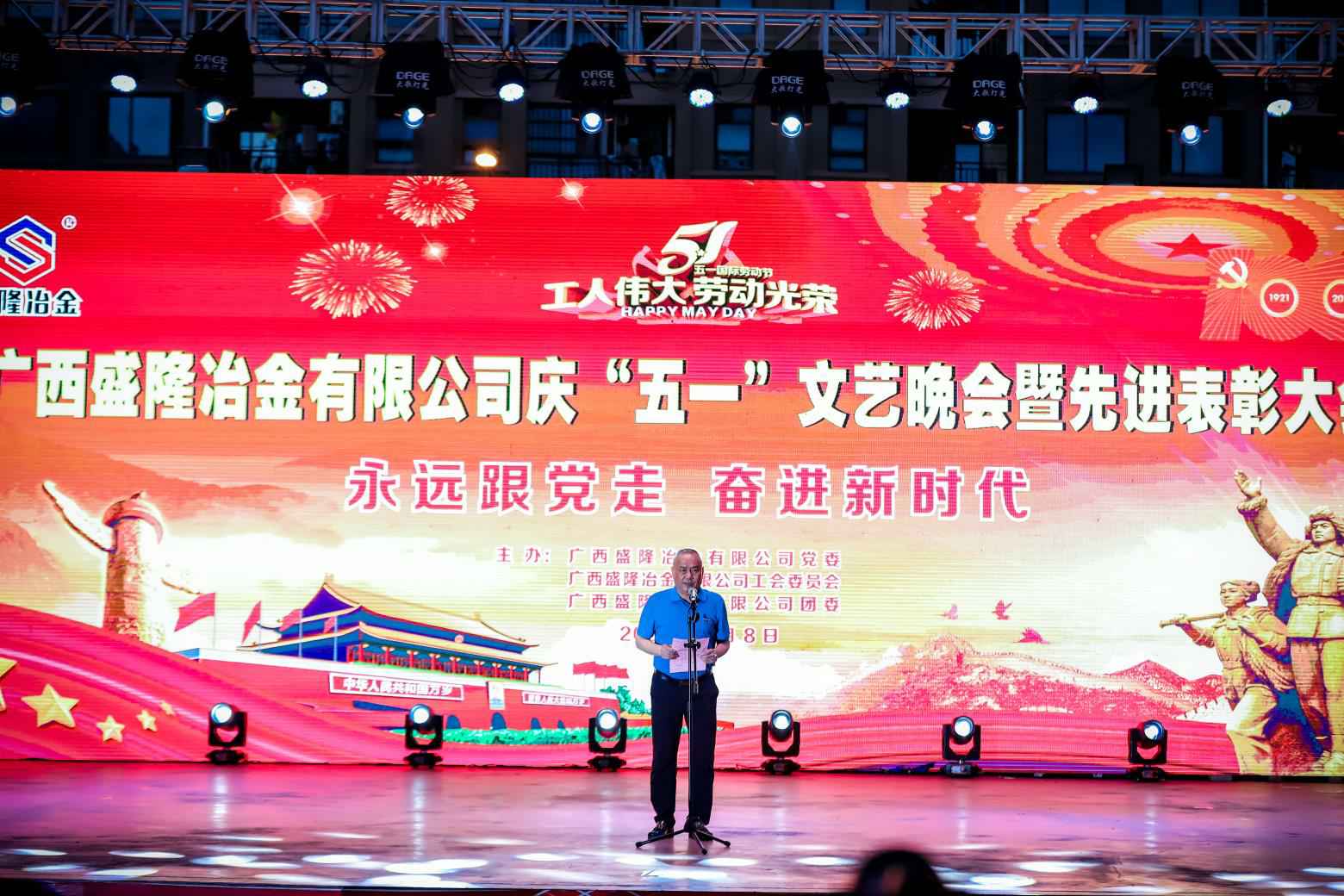 5月8日晚,九游官方网站-九游jiuyou(中国)盛隆佳园文化广场歌声嘹亮,掌声如潮。由九游官方网站-九游jiuyou(中国)党委、工会委员会、团委联合主办的“永远跟党走,奋进新时代——庆‘五一’文艺晚会暨先进表彰大会”在这里隆重举行。公司常务副总经理陈亮出席晚会并致辞,副总经理兼安环总监吕华民、副总经理兼技术中心主任刘光穆、总工程师兼规划发展部经理梁新亮、总经理助理兼广西广盛高强耐磨新材料有限公司总经理王文凯、党委常务副书记游元喜、工会主席兼总经理办公室主任刘明奇及各厂部主要领导出席。